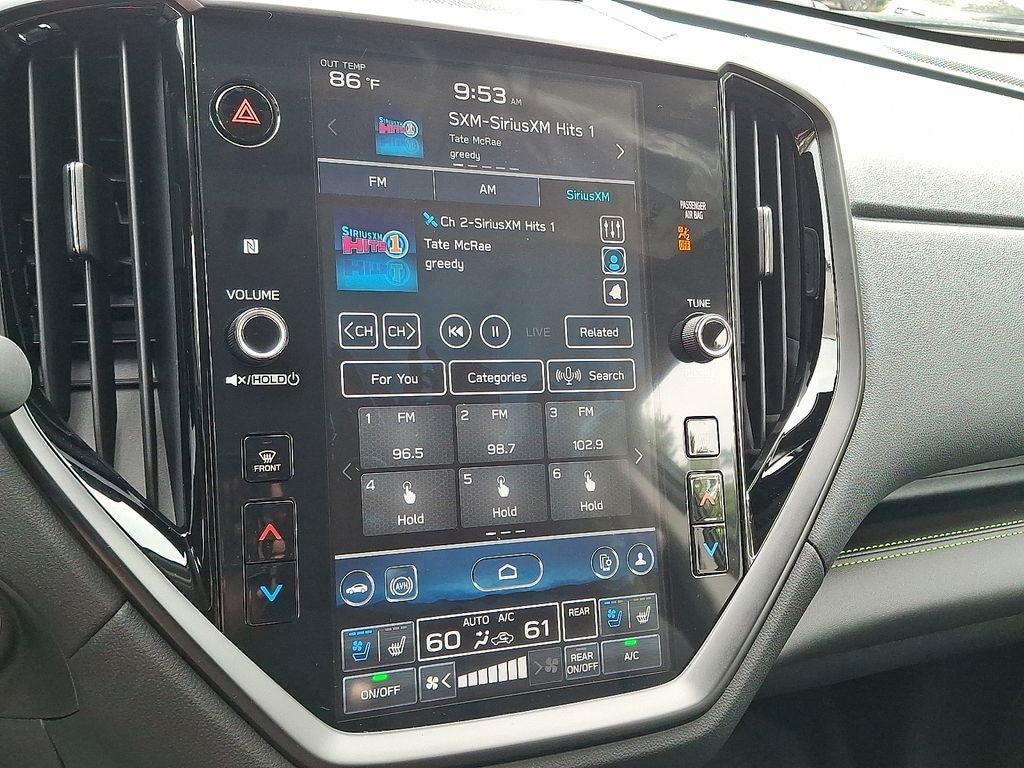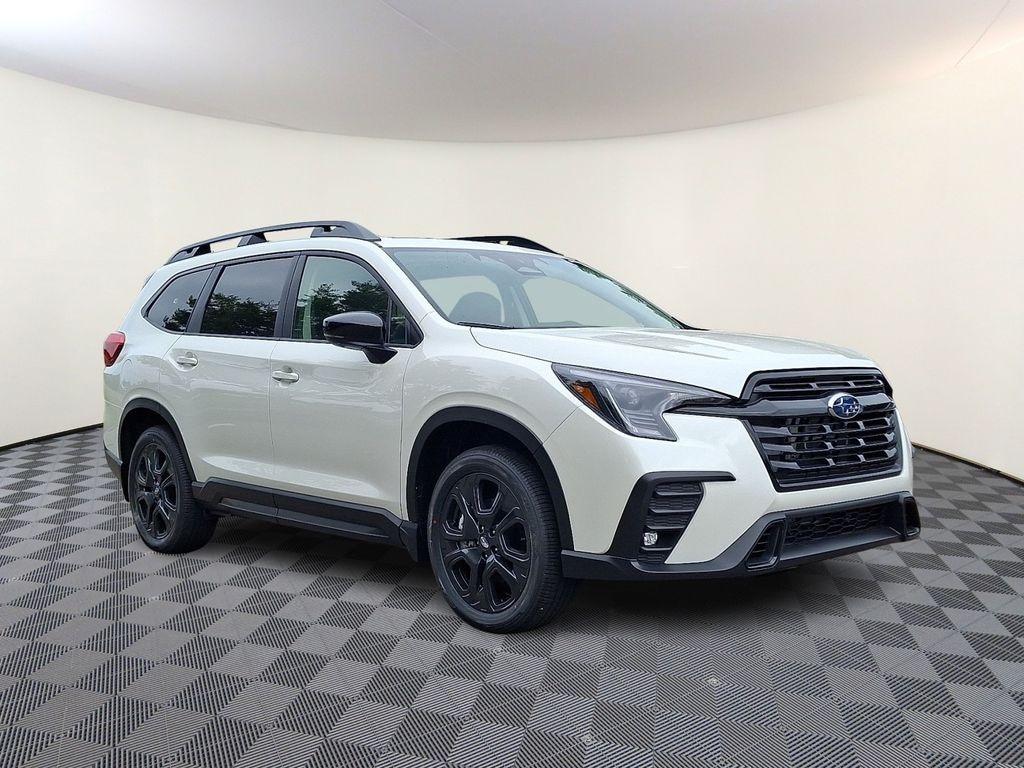 Crystal White 2025 Subaru Ascent Onyx Edition Touring AWD Lineartronic CVT 2.4L 4-Cylinder DOHC 16V 14 Speakers, 3rd row seats: bench, 4-Wheel Disc Brakes, ABS brakes, Air Conditioning, All-Weather Floor Liners, Alloy wheels, AM/FM radio: SiriusXM with 360L, Apple CarPlay & Android Auto, Auto High-beam Headlights, Auto-Dimming Exterior Mirror w/Approach Light, Auto-dimming Rear-View mirror, Automatic temperature control, Brake assist, Bumpers: body-color, Cargo Tray, Compass, Delay-off headlights, Driver door bin, Driver vanity mirror, Dual front impact airbags, Dual front side impact airbags, Electronic Stability Control, Emergency communication system: MySubaru Safety (3-year free trial), Exterior Parking Camera Rear, Four wheel independent suspension, Front anti-roll bar, Front Bucket Seats, Front Center Armrest, Front dual zone A/C, Front fog lights, Front reading lights, Fully automatic headlights, Garage door transmitter: HomeLink, harman/kardon® Speakers, Heated & Ventilated Front Bucket Seats, Heated door mirrors, Heated front seats, Heated rear seats, Heated steering wheel, HVAC memory, Illuminated entry, Knee airbag, Leather Shift Knob, Leather steering wheel, LED Cargo Area Lighting, LED Upgrade, Low tire pressure warning, Memory seat, Navigation System, Occupant sensing airbag, Outside temperature display, Overhead airbag, Overhead console, Panic alarm, Passenger door bin, Passenger vanity mirror, Perforated Nappa Leather-Trimmed Upholstery, Power door mirrors, Power driver seat, Power Liftgate, Power moonroof, Power passenger seat, Power steering, Power windows, Radio data system, Radio: Subaru 11.6" Multimedia System w/Navigation, Rain sensing wipers, Rear air conditioning, Rear anti-roll bar, Rear reading lights, Rear window defroster, Rear window wiper, Reclining 3rd row seat, Remote keyless entry, Security system, Speed control, Speed-sensing steering, Splash Guards, Split folding rear seat, Spoiler, Standard Model, Steering wheel mounted audio controls, Tachometer, Telescoping steering wheel, Tilt steering wheel, Traction control, Trip computer, Turn signal indicator mirrors, USB Charging Ports, Variably intermittent wipers, Ventilated front seats, Wheels: 20" x 7.5 J Aluminum Alloy w/Black Finish.