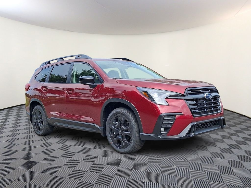 Crimson Red 2025 Subaru Ascent Onyx Edition AWD Lineartronic CVT 2.4L 4-Cylinder DOHC 16V 3rd row seats: bench, 4-Wheel Disc Brakes, 6 Speakers, ABS brakes, Air Conditioning, Alloy wheels, AM/FM radio: SiriusXM with 360L, Apple CarPlay & Android Auto, Auto High-beam Headlights, Auto-Dimming Exterior Mirror w/Approach Light, Auto-dimming Rear-View mirror, Automatic temperature control, Brake assist, Bumpers: body-color, Cargo Tray, Compass, Delay-off headlights, Driver door bin, Driver vanity mirror, Dual front impact airbags, Dual front side impact airbags, Electronic Stability Control, Emergency communication system: MySubaru Safety (3-year free trial), Exterior Parking Camera Rear, Four wheel independent suspension, Front anti-roll bar, Front Bucket Seats, Front Center Armrest, Front dual zone A/C, Front fog lights, Front reading lights, Fully automatic headlights, Garage door transmitter: HomeLink, Heated door mirrors, Heated Front Bucket Seats, Heated front seats, Heated steering wheel, Illuminated entry, Knee airbag, Leather Shift Knob, Leather steering wheel, LED Cargo Area Lighting, LED Upgrade, Low tire pressure warning, Occupant sensing airbag, Outside temperature display, Overhead airbag, Overhead console, Panic alarm, Passenger door bin, Passenger vanity mirror, Power door mirrors, Power driver seat, Power Liftgate, Power moonroof, Power steering, Power windows, Radio data system, Radio: Subaru 11.6" Multimedia Plus System, Rear air conditioning, Rear anti-roll bar, Rear reading lights, Rear window defroster, Rear window wiper, Reclining 3rd row seat, Remote keyless entry, Security system, Speed control, Speed-sensing steering, Splash Guards, Split folding rear seat, Spoiler, Standard Model, StarTex Upholstery, Steering wheel mounted audio controls, Tachometer, Telescoping steering wheel, Tilt steering wheel, Traction control, Trip computer, Turn signal indicator mirrors, USB Charging Ports, Variably intermittent wipers, Wheels: 20" x 7.5 J Aluminum Alloy w/Black Finish.