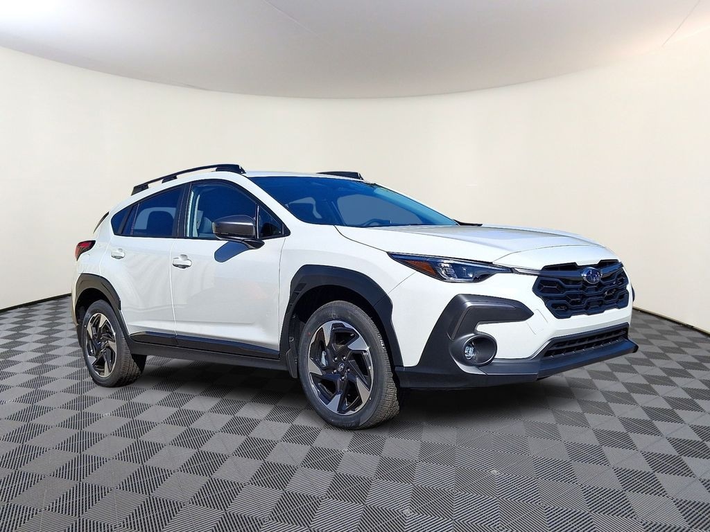 White Pearl 2025 Subaru Crosstrek Limited AWD Lineartronic CVT 2.5L 4-Cylinder DOHC 16V 4-Wheel Disc Brakes, 6 Speakers, ABS brakes, Air Conditioning, Alloy wheels, AM/FM radio: SiriusXM, Anti-whiplash front head restraints, Auto High-beam Headlights, Auto-Dimming Exterior Mirror w/Approach Light, Auto-Dimming Mirror w/Compass & HomeLink, Automatic temperature control, Brake assist, Bumpers: body-color, Crosstrek Mirror Package, Driver door bin, Driver vanity mirror, Dual front impact airbags, Dual front side impact airbags, Electronic Stability Control, Emergency communication system, Exterior Parking Camera Rear, Four wheel independent suspension, Front anti-roll bar, Front Bucket Seats, Front Center Armrest, Front dual zone A/C, Front fog lights, Front reading lights, Fully automatic headlights, Heated door mirrors, Heated Front Bucket Seats, Heated front seats, Illuminated entry, Knee airbag, Leather Shift Knob, Leather steering wheel, Leather-Trimmed Upholstery, Low tire pressure warning, Occupant sensing airbag, Outside temperature display, Overhead airbag, Overhead console, Panic alarm, Passenger door bin, Passenger vanity mirror, Power door mirrors, Power driver seat, Power steering, Power windows, Radio data system, Radio: Subaru 11.6" Multimedia Plus System, Rear anti-roll bar, Rear Bumper Cover, Rear Gate Light, Rear seat center armrest, Rear window defroster, Rear window wiper, Remote keyless entry, Security system, Speed control, Speed-sensing steering, Splash Guards, Split folding rear seat, Spoiler, Standard Model, Steering wheel mounted audio controls, Tachometer, Telescoping steering wheel, Tilt steering wheel, Traction control, Trip computer, Turn signal indicator mirrors, Variably intermittent wipers, Wheels: 18" x 7.0" J Machine Finish Aluminum-Alloy.
