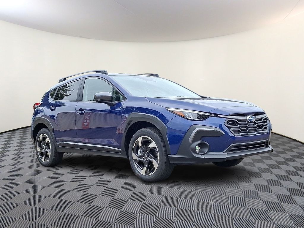 Blue 2025 Subaru Crosstrek Limited AWD Lineartronic CVT 2.5L 4-Cylinder DOHC 16V 4-Wheel Disc Brakes, 6 Speakers, ABS brakes, Air Conditioning, All-Weather Floor Liners, Alloy wheels, AM/FM radio: SiriusXM, Anti-whiplash front head restraints, Auto High-beam Headlights, Auto-Dimming Exterior Mirror w/Approach Light, Auto-Dimming Mirror w/Compass & HomeLink, Automatic temperature control, Brake assist, Bumpers: body-color, Driver door bin, Driver vanity mirror, Dual front impact airbags, Dual front side impact airbags, Electronic Stability Control, Emergency communication system, Exterior Parking Camera Rear, Four wheel independent suspension, Front anti-roll bar, Front Bucket Seats, Front Center Armrest, Front dual zone A/C, Front fog lights, Front reading lights, Fully automatic headlights, harman/kardon Audio & Power Moonroof, harman/kardon Surround Sound Speaker System, Heated door mirrors, Heated Front Bucket Seats, Heated front seats, Illuminated entry, Knee airbag, Leather Shift Knob, Leather steering wheel, Leather-Trimmed Upholstery, LED Upgrade, Low tire pressure warning, Occupant sensing airbag, Outside temperature display, Overhead airbag, Overhead console, Panic alarm, Passenger door bin, Passenger vanity mirror, Popular Package #3A, Power door mirrors, Power driver seat, Power Moonroof, Power steering, Power windows, Radio data system, Radio: Subaru 11.6" Multimedia Plus System, Rear anti-roll bar, Rear Bumper Cover, Rear seat center armrest, Rear Seatback Protector, Rear window defroster, Rear window wiper, Remote keyless entry, Security system, Speed control, Speed-sensing steering, Split folding rear seat, Spoiler, Steering wheel mounted audio controls, Tachometer, Telescoping steering wheel, Tilt steering wheel, Traction control, Trip computer, Turn signal indicator mirrors, Variably intermittent wipers, Wheels: 18" x 7.0" J Machine Finish Aluminum-Alloy.