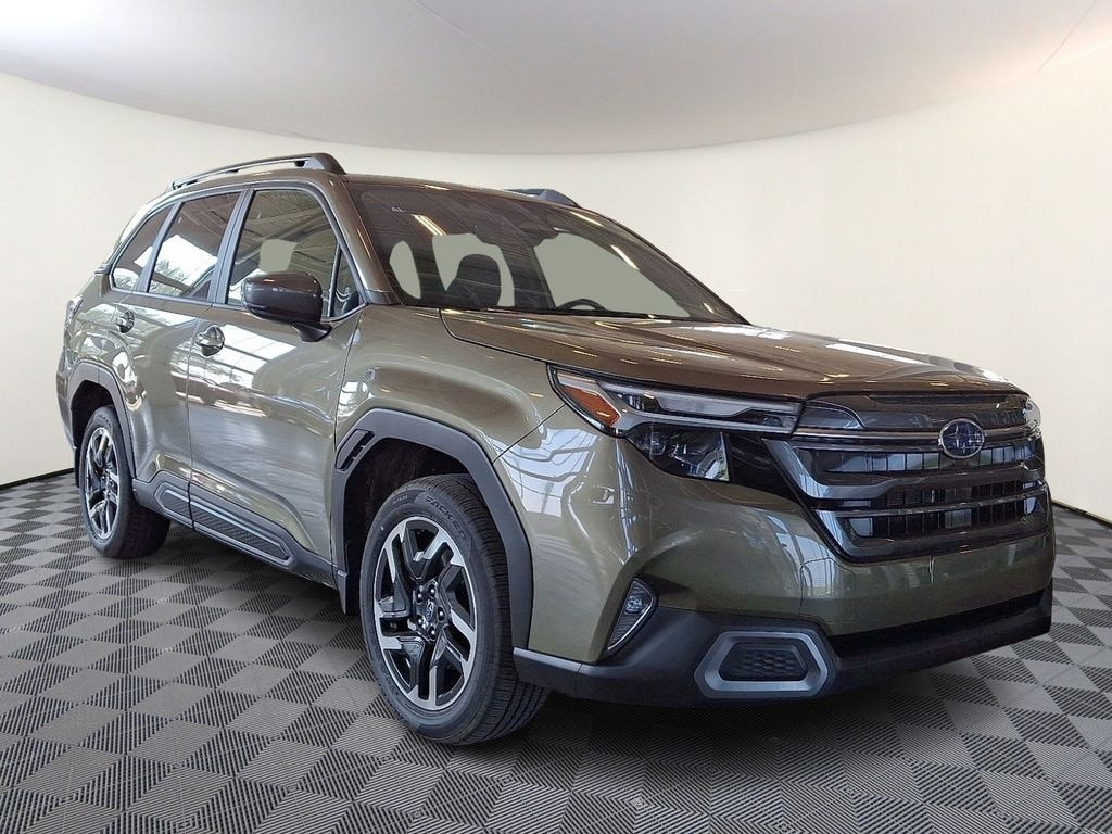 dark metallic aluminum alloy 2025 Subaru Forester Limited AWD Lineartronic CVT 2.5L 4-Cylinder DOHC 16V 4-Wheel Disc Brakes, 6 Speakers, ABS brakes, Air Conditioning, All-Weather Floor Liners, Alloy wheels, AM/FM radio: SiriusXM with 360L, Anti-whiplash front head restraints, Auto High-beam Headlights, Auto-Dimming Mirror w/Compass & HomeLink, Automatic temperature control, Brake assist, Bumpers: body-color, Cargo Net, Driver door bin, Driver vanity mirror, Dual front impact airbags, Dual front side impact airbags, Electronic Stability Control, Emergency communication system: MySubaru Safety (3-year free trial), Exterior Parking Camera Rear, Four wheel independent suspension, Front anti-roll bar, Front Bucket Seats, Front Center Armrest, Front dual zone A/C, Front fog lights, Front reading lights, Fully automatic headlights, harman/kardon Audio & Navigation & RAB, Heated door mirrors, Heated Front Bucket Seats, Heated front seats, Heated steering wheel, Illuminated entry, Knee airbag, Leather steering wheel, Low tire pressure warning, Occupant sensing airbag, Outside temperature display, Overhead airbag, Overhead console, Panic alarm, Passenger door bin, Passenger vanity mirror, Perforated Leather-Trimmed Upholstery, Power door mirrors, Power driver seat, Power Liftgate, Power moonroof: Panoramic, Power passenger seat, Power steering, Power windows, Radio data system, Radio: Subaru 11.6" Multimedia Navigation System, Radio: Subaru 11.6" Multimedia Plus System, Rear anti-roll bar, Rear Bumper Cover, Rear seat center armrest, Rear window defroster, Rear window wiper, Remote keyless entry, Reverse Automatic Braking (RAB) System, Security system, Speed control, Speed-sensing steering, Splash Guards, Split folding rear seat, Spoiler, Steering wheel mounted audio controls, Tachometer, Telescoping steering wheel, Tilt steering wheel, Traction control, Trip computer, Turn signal indicator mirrors, Variably intermittent wipers, Wheels: 18" x 7.0 J Dark Metallic Aluminum-Alloy.