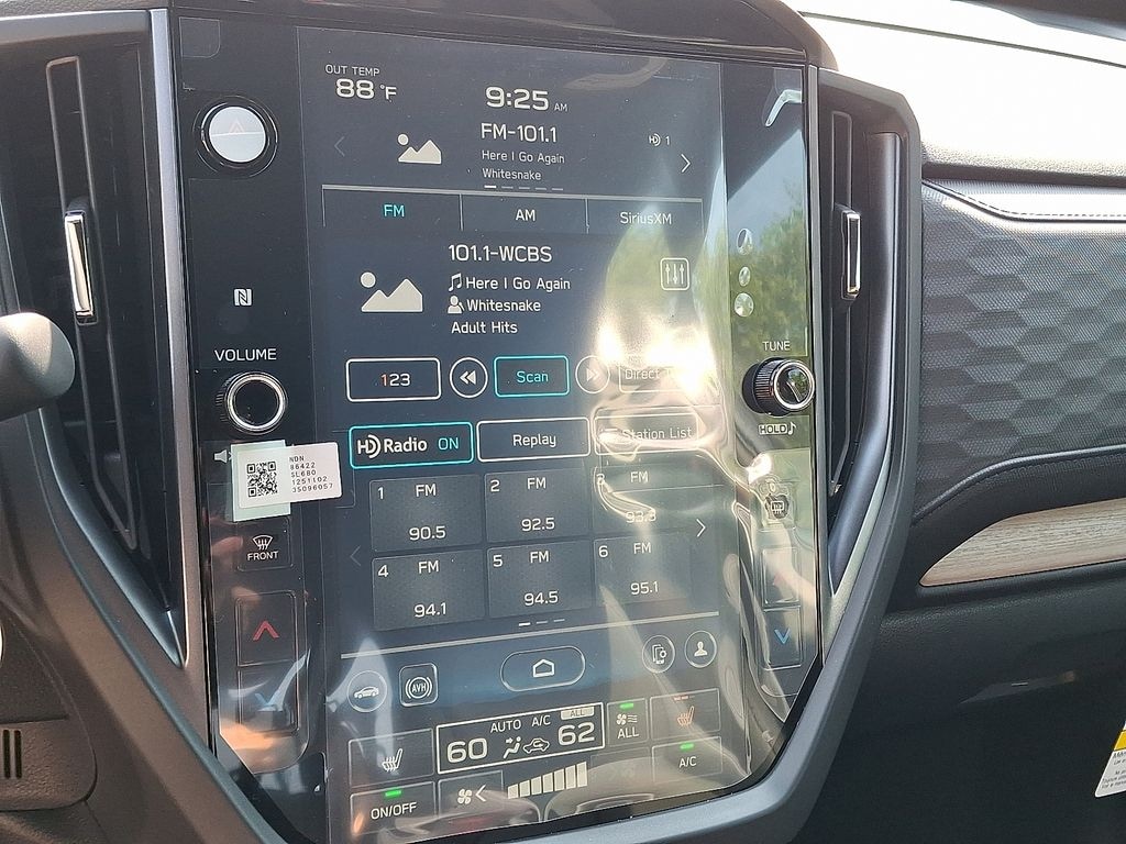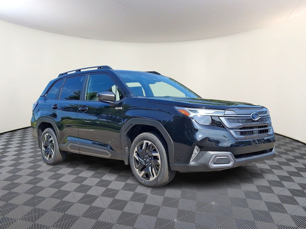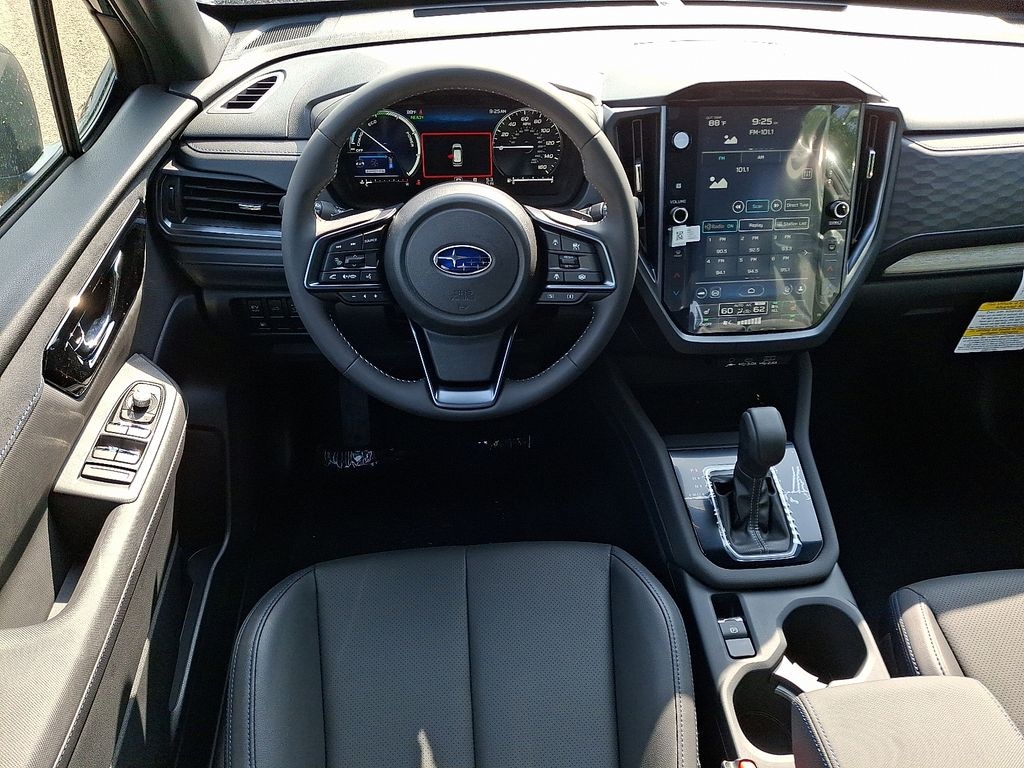 Crystal Black 2025 Subaru Forester Hybrid Limited AWD Lineartronic CVT 2.5L 4-Cylinder DOHC 16V 2.5L 4-Cylinder DOHC 16V, 11 Speakers, 4-Wheel Disc Brakes, ABS brakes, Air Conditioning, Alloy wheels, AM/FM radio: SiriusXM with 360L, Anti-whiplash front head restraints, Auto High-beam Headlights, Auto-Dimming Exterior Mirror w/Approach Light, Auto-Dimming Mirror w/Compass & HomeLink, Automatic temperature control, Brake assist, Bumpers: body-color, Cargo Tray, Compass, Driver door bin, Driver vanity mirror, Dual front impact airbags, Dual front side impact airbags, Electronic Stability Control, Emergency communication system: MySubaru Safety (3-year free trial), Exterior Parking Camera Rear, Four wheel independent suspension, Front anti-roll bar, Front Bucket Seats, Front Center Armrest, Front dual zone A/C, Front fog lights, Front reading lights, Fully automatic headlights, harman/kardon® Speakers, Heated door mirrors, Heated Front Bucket Seats, Heated front seats, Illuminated entry, Knee airbag, Low tire pressure warning, Navigation system: TomTom Navigation w/what3words, Occupant sensing airbag, Outside temperature display, Overhead airbag, Overhead console, Panic alarm, Passenger door bin, Passenger vanity mirror, Power door mirrors, Power driver seat, Power Liftgate, Power moonroof: Panoramic, Power passenger seat, Power steering, Power windows, Radio data system, Radio: Subaru 11.6" Multimedia Navigation System, Rear anti-roll bar, Rear Bumper Cover, Rear seat center armrest, Rear window defroster, Rear window wiper, Remote keyless entry, Security system, Speed control, Speed-sensing steering, Splash Guards, Split folding rear seat, Spoiler, Standard Model, StarTex Upholstery, Steering wheel mounted audio controls, Tachometer, Telescoping steering wheel, Tilt steering wheel, Traction control, Trip computer, Turn signal indicator mirrors, Variably intermittent wipers, Wheels: 18" x 7.0 J Dark Metallic Aluminum-Alloy, 2.5L 4-Cylinder DOHC 16V.