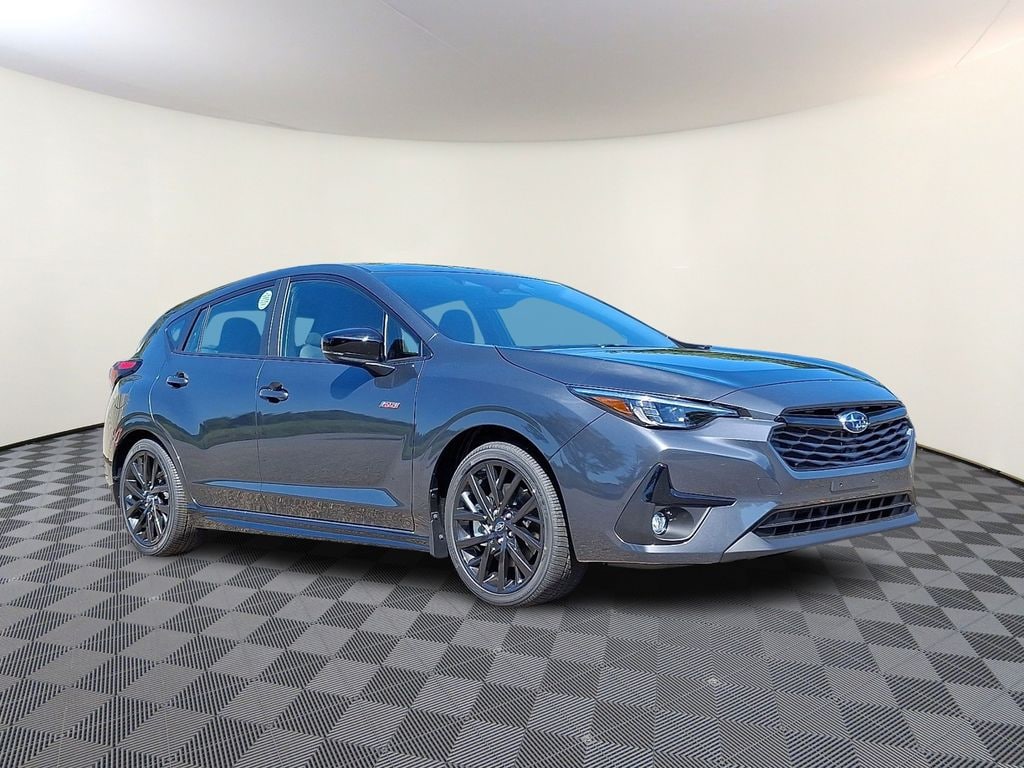 Gray 2025 Subaru Impreza 2.5RS AWD CVT Lineartronic 2.5L I4 DOHC 16V 4-Wheel Disc Brakes, 6 Speakers, ABS brakes, Air Conditioning, Alloy wheels, AM/FM radio: SiriusXM with 360L, Anti-whiplash front head restraints, Auto High-beam Headlights, Auto-Dimming Exterior Mirror w/Approach Light, Auto-Dimming Mirror w/Compass & HomeLink, Automatic temperature control, Brake assist, Bumpers: body-color, Cargo Tray, Driver door bin, Driver vanity mirror, Dual front impact airbags, Dual front side impact airbags, Electronic Stability Control, Emergency communication system, Exterior Parking Camera Rear, Four wheel independent suspension, Front anti-roll bar, Front Bucket Seats, Front Center Armrest, Front dual zone A/C, Front fog lights, Front reading lights, Fully automatic headlights, Heated door mirrors, Heated Front Bucket Seats, Heated front seats, Illuminated entry, Knee airbag, Leather Shift Knob, LED Upgrade, Low tire pressure warning, Occupant sensing airbag, Outside temperature display, Overhead airbag, Overhead console, Panic alarm, Passenger door bin, Passenger vanity mirror, Popular Package #3, Power door mirrors, Power steering, Power windows, Radio data system, Radio: Subaru 11.6" Multimedia Plus System, Rear anti-roll bar, Rear Bumper Applique, Rear seat center armrest, Rear Seatback Protector, Rear window defroster, Rear window wiper, Remote keyless entry, RS Cloth Upholstery, Security system, Speed control, Speed-sensing steering, Splash Guards, Split folding rear seat, Spoiler, Standard Model, Steering wheel mounted audio controls, Tachometer, Telescoping steering wheel, Tilt steering wheel, Traction control, Trip computer, Turn signal indicator mirrors, Variably intermittent wipers, Wheels: 18" x 7.0" J Dark Gray Aluminum-Alloy.