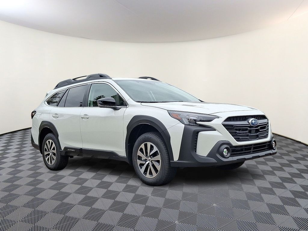 White Pearl 2025 Subaru Outback Premium AWD CVT Lineartronic 2.5L 4-Cylinder DOHC 16V 4-Wheel Disc Brakes, 6 Speakers, ABS brakes, Air Conditioning, Alloy wheels, AM/FM radio: SiriusXM with 360L, Apple CarPlay & Android Auto, Auto High-beam Headlights, Auto-Dimming Mirror w/Compass & HomeLink, Automatic temperature control, Brake assist, Bumpers: body-color, Cloth Upholstery, Driver door bin, Driver vanity mirror, Dual front impact airbags, Dual front side impact airbags, Electronic Stability Control, Emergency communication system: MySubaru Safety (3-year free trial), Exterior Parking Camera Rear, Four wheel independent suspension, Front anti-roll bar, Front Bucket Seats, Front Center Armrest w/Storage, Front dual zone A/C, Front fog lights, Front reading lights, Fully automatic headlights, Heated door mirrors, Heated Front Bucket Seats, Heated front seats, Illuminated entry, Knee airbag, Leather Shift Knob, Leather steering wheel, LED Upgrade, Low tire pressure warning, Occupant sensing airbag, Outside temperature display, Overhead airbag, Overhead console, Panic alarm, Passenger door bin, Passenger vanity mirror, Power door mirrors, Power driver seat, Power steering, Power windows, Radio: Subaru 11.6" Multimedia Plus System, Rear anti-roll bar, Rear Bumper Cover, Rear seat center armrest, Rear window defroster, Rear window wiper, Remote keyless entry, Roof rack, Security system, Speed control, Speed-sensing steering, Splash Guards, Split folding rear seat, Spoiler, Standard Model, Steering wheel mounted audio controls, Tachometer, Telescoping steering wheel, Tilt steering wheel, Traction control, Trip computer, Turn signal indicator mirrors, Variably intermittent wipers, Wheels: 17" x 7J Black Aluminum-Alloy.
