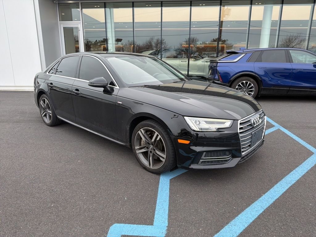 2018 Audi A4 2.0T quattro Brilliant Black quattro 7-Speed Automatic S tronic 2.0L I4 TFSI DOHC7-Speed Automatic S tronic, quattro, S Line Black Leather, 10 Speakers, 4-Wheel Disc Brakes, ABS brakes, Air Conditioning, Alloy wheels, Aluminum High-Gloss Window Surrounds, AM/FM radio: SiriusXM, Anti-whiplash front head restraints, Audi Beam-Rings, Audi Guard All-Weather Floor Mats, Audi Pre Sense Rear, Audi Side Assist, Audi smartphone interface (Apple CarPlay/Android Auto), Auto-dimming door mirrors, Auto-dimming Rear-View mirror, Automatic temperature control, Bang & Olufsen Sound System w/3D Sound, Brake assist, Bumpers: body-color, Cold Weather Package, Compass, Delay-off headlights, Driver door bin, Driver vanity mirror, Dual front impact airbags, Dual front side impact airbags, Electronic Stability Control, Exterior Parking Camera Rear, Four wheel independent suspension, Front anti-roll bar, Front Bucket Seats, Front Center Armrest, Front dual zone A/C, Front fog lights, Front reading lights, Full LED Headlights, Garage door transmitter: HomeLink, Heated 3-Spoke Steering Wheel, Heated 3-Step Front Bucket Seats, Heated door mirrors, Heated front seats, Heated Rear Seats, High intensity discharge headlights: Xenon plus, Illuminated entry, Knee airbag, Leather Seating Surfaces, Leather Shift Knob, Leather steering wheel, Low tire pressure warning, Memory seat, Natural Gray Oak Inlays, Navigation System, Occupant sensing airbag, Outside temperature display, Overhead airbag, Overhead console, Panic alarm, Parking System Plus, Passenger door bin, Passenger vanity mirror, Power door mirrors, Power driver seat, Power moonroof, Power passenger seat, Power steering, Power windows, Premium Plus Package, Radio data system, Radio: Audi MMI Navigation Plus w/MMI Touch, Rain sensing wipers, Rear air conditioning, Rear anti-roll bar, Rear fog lights, Rear reading lights, Rear seat center armrest, Rear window defroster, Remote CD player, Remote keyless entry, Security system, Speed control, Speed-sensing steering, Speed-Sensitive Wipers, Split folding rear seat, Steering wheel mounted audio controls, Tachometer, Telescoping steering wheel, Tilt steering wheel, Traction control, Trip computer, Turn signal indicator mirrors, Variably intermittent wipers, Wheels: 7.5 x 17 5-Spoke-Y Design, Wheels: 8 x 18 5-Spoke Dynamic Design, 7-Speed Automatic S tronic, quattro, S Line Black Leather.Awards:* 2018 KBB.com 10 Most Awarded Brands