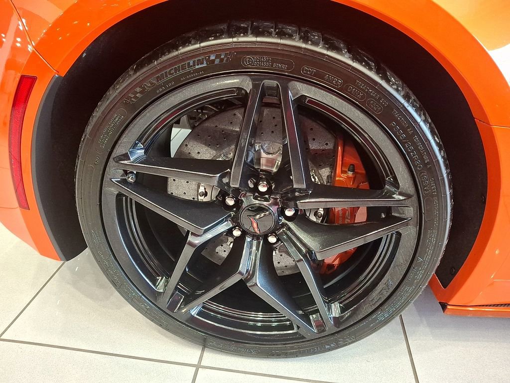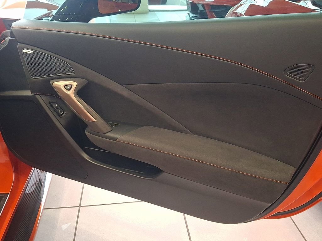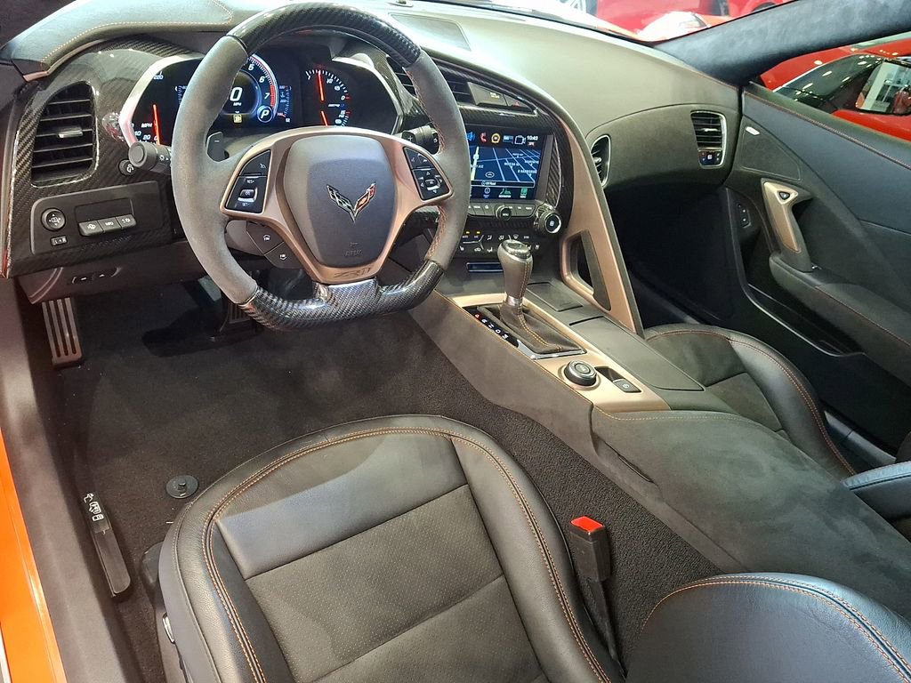 The interior of this Corvette ZR1 is equally impressive, with a premium leather-wrapped cabin, custom orange stitching, and a host of advanced technology features. The Bose premium audio system and the Performance Data & Video Recorder ensure that every drive is an unforgettable experience.