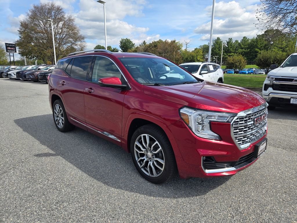 2023 GMC Terrain Denali Volcanic Red Tintcoat AWD 9-Speed Automatic 1.5L DOHCAWD, 2 USB Data Ports, 2 USB Data Ports w/SD Card Reader, 3.47 Axle Ratio, 4-Wheel Disc Brakes, 6-Way Power Front Passenger Seat, 7 Speakers, 8-Way Power Driver Seat Adjuster, ABS brakes, Adaptive Cruise Control, Air Conditioning, Alloy wheels, AM/FM radio: SiriusXM, Auto High-beam Headlights, Auto-dimming Rear-View mirror, Automatic Parking Assist, Automatic temperature control, Bluetooth® For Phone, Brake assist, Bumpers: body-color, Comfort Package, Compass, Delay-off headlights, Denali Premium Package, Driver & Front Passenger Heated Seats, Driver door bin, Driver vanity mirror, Dual front impact airbags, Dual front side impact airbags, Electronic Stability Control, Emergency communication system: OnStar and GMC connected services capable, Four wheel independent suspension, Front anti-roll bar, Front Bucket Seats, Front Center Armrest, Front dual zone A/C, Front fog lights, Front Passenger 2-Way Power Lumbar, Front reading lights, Fully automatic headlights, Garage door transmitter, HD Surround Vision, Heads-Up Display, Heated door mirrors, Heated front seats, Heated Rear Outboard Seating Positions, Heated steering wheel, Illuminated entry, Lane Departure Warning System, License Plate Front Mounting Package, Low tire pressure warning, Memory seat, Navigation system: GMC Connected Navigation, Occupant sensing airbag, Outside temperature display, Overhead airbag, Overhead console, Panic alarm, Passenger door bin, Passenger vanity mirror, Perforated Leather-Appointed Seat Trim, Power door mirrors, Power Driver Lumbar Control, Power driver seat, Power Liftgate, Power passenger seat, Power steering, Power windows, Preferred Equipment Group 5SA, Premium 7-Speaker Bose Sound System w/Amplifier, Radio data system, Radio: GMC Infotainment Audio System w/Navigation, Rear anti-roll bar, Rear seat center armrest, Rear window defroster, Rear window wiper, Remote keyless entry, Roof rack: rails only, Security system, SiriusXM Radio, Skyscape Power Sunroof w/Power Sunscreen, Speed control, Speed-sensing steering, Split folding rear seat, Spoiler, Steering wheel mounted audio controls, Tachometer, Tech Package, Telescoping steering wheel, Tilt steering wheel, Traction control, Trip computer, Turn signal indicator mirrors, Variably intermittent wipers, Ventilated Driver Seat, Ventilated Front Passenger Seat, Wheels: 19 x 7.5 Bright Machined Aluminum, Wireless Apple CarPlay/Wireless Android Auto, AWD.