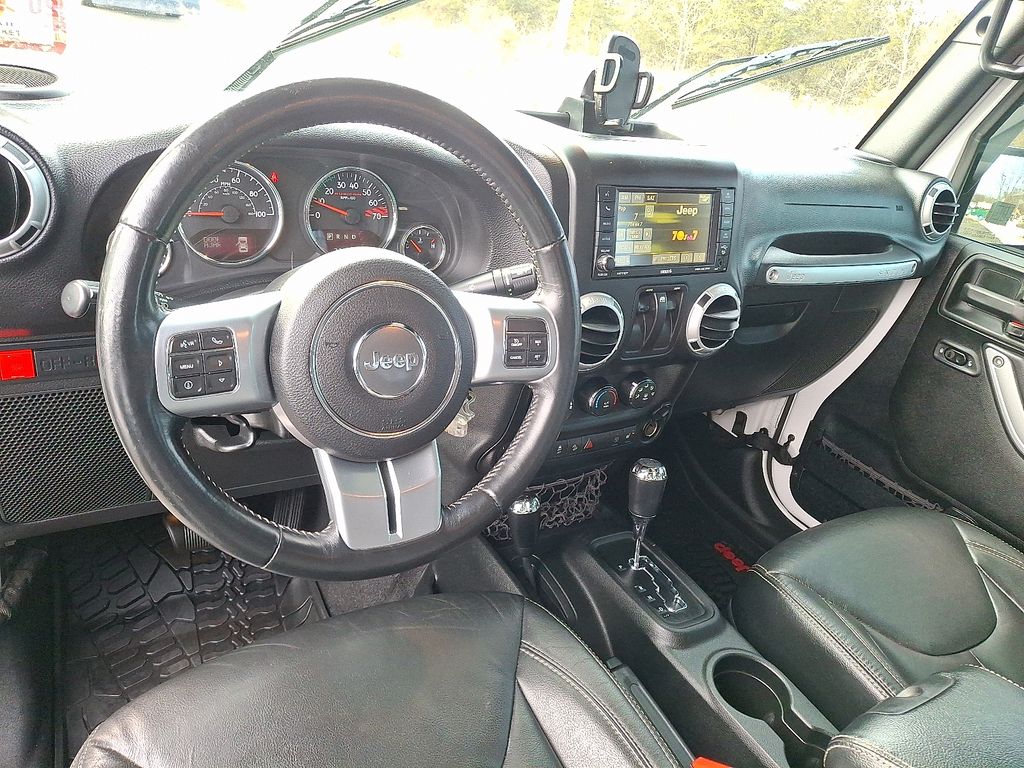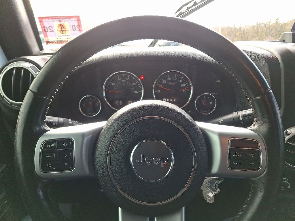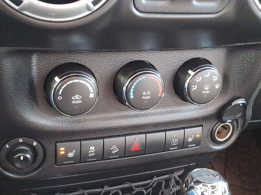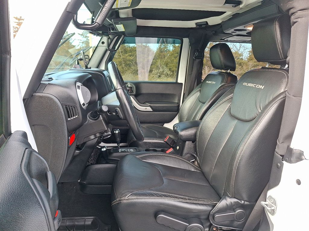 17" x 7.5" Polished Mineral Gray Wheels, 4-Wheel Disc Brakes, 4.10 Rear Axle Ratio, 40GB Hard Drive w/28GB Available, 5-Year SiriusXM Travel Link Service, 6.5" Touchscreen Display, 8 Speakers, ABS brakes, Accent Stitching, Add 4.10 Axle Ratio, Air Conditioning, Alloy wheels, Alpine 9-Speaker w/All Weather Subwoofer, AM/FM radio: SiriusXM, Audio Jack Input for Mobile Devices, Auto-Dimming Mirror w/Reading Lamp, Black/Chrome Screws Fuel Filler Door, Brake assist, CD player, Chrome/Leather Wrapped Shift Knob, Cloth Seats w/Adjustable Head Restraints, Compass, Connectivity Group, Deep Tint Sunscreen Windows, Driver door bin, Driver Height Adjuster Seat, Driver vanity mirror, Dual front impact airbags, Electronic Stability Control, Front 1-Touch Down Power Windows, Front anti-roll bar, Front Bucket Seats, Front Center Armrest w/Storage, Front fog lights, Front Seat Back Map Pockets, Fully automatic headlights, GPS Navigation, Heated Front Seats, Hood w/Power Dome, Integrated roll-over protection, Jeep Trail Rated Kit, Leather steering wheel, Leather Trimmed Bucket Seats, Low tire pressure warning, MOPAR Slush Mats, Occupant sensing airbag, Outside temperature display, Passenger door bin, Passenger vanity mirror, Performance Suspension, Power Convenience Group, Power Heated Mirrors, Power Locks, Power steering, Premium Black Sunrider Soft Top, Premium EVIC Message Center, Quick Order Package 23J Rubicon Hard Rock (DISC), Quick Order Package 24J Rubicon Hard Rock (DISC), Radio data system, Radio: 130, Radio: 430 Nav, Rear anti-roll bar, Red Front & Rear Tow Hooks, Red Trail Rated Badge, Remote Keyless Entry, Remote Start System, Remote USB Port, Rubicon Hard Rock Package, Rubicon Hood Decal, Security Alarm, Silver Interior Accents, SIRIUSXM Travel Link, Speed control, Steel Front Bumper, Steel Rear Bumper, Steering wheel mounted audio controls, Tachometer, Tilt steering wheel, Tire Pressure Monitoring Display, Traction control, Trip computer, Uconnect Voice Command w/Bluetooth, Variably intermittent wipers, Vehicle Information Center, Wheels: 17" x 7.5" Polished Semi-Gloss Blk (DISC).
