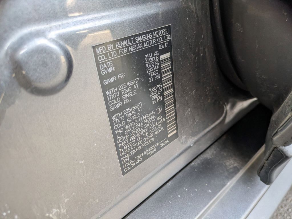 AWD, 17" Aluminum Alloy Wheels, 4-Wheel Disc Brakes, 6 Speakers, 6.386 Axle Ratio, ABS brakes, Activation Disclaimer, Air Conditioning, Alloy wheels, AM/FM radio: SiriusXM, Anti-whiplash front head restraints, Apple CarPlay/Android Auto, Automatic temperature control, Blind Spot Warning, Brake assist, Bumpers: body-color, CD player, Cloth Seat Trim, Delay-off headlights, Driver door bin, Driver vanity mirror, Dual front impact airbags, Dual front side impact airbags, Electronic Stability Control, Floor Mats & 2-PC Cargo Area Protector, Four wheel independent suspension, Front anti-roll bar, Front Bucket Seats, Front Center Armrest w/Storage, Front dual zone A/C, Front reading lights, Fully automatic headlights, Heated door mirrors, Heated front seats, Illuminated entry, Leather Shift Knob, Low tire pressure warning, Occupant sensing airbag, Outside temperature display, Overhead airbag, Overhead console, Panic alarm, Passenger door bin, Passenger vanity mirror, Power door mirrors, Power driver seat, Power Liftgate, Power steering, Power windows, Quick Comfort Heated Front Bucket Seats, Radio data system, Radio: AM/FM/CD/AUX, Radio: AM/FM/CD/AUX NissanConnect w/Navigation, Rear anti-roll bar, Rear seat center armrest, Rear window defroster, Rear window wiper, Remote keyless entry, Roof rack: rails only, Security system, Speed control, Speed-sensing steering, Split folding rear seat, Spoiler, Steering wheel mounted audio controls, Tachometer, Telescoping steering wheel, Tilt steering wheel, Traction control, Trip computer, Turn signal indicator mirrors, Variably intermittent wipers, AWD.