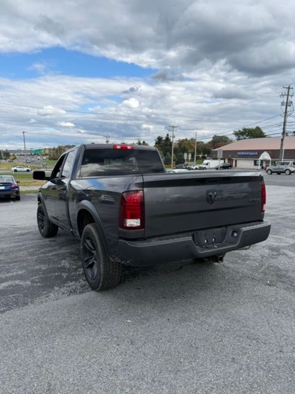 3.21 Rear Axle Ratio, 4-Wheel Disc Brakes, 40/20/40 Split Bench Seat, 4x4 Flat Black Badge, 6 Speakers, ABS brakes, Active Grille Shutters, Add Electronic Stability Control, Air Conditioning, Alloy wheels, AM/FM radio: SiriusXM, Audio Input Jack for Mobile Devices, Bi-Function Halogen Projector Headlamps, Black Exterior Mirrors, Black Exterior Truck Badging, Black Grille w/RAM Lettering, Black Powder Coated Rear Bumper, Black RAM Head Tailgate Badge, Brake assist, Bumpers: chrome, Center Hub, Charge Only Remote USB Port, Cloth 40/20/40 Bench Seat, Compass, Delay-off headlights, Driver door bin, Dual front impact airbags, Dual front side impact airbags, Electronic Shift, Electronic Stability Control, Engine Calibration Flash, V2, Exterior Mirrors w/Heating Element, Front anti-roll bar, Front Armrest w/3 Cupholders, Front Center Armrest w/Storage, Front License Plate Bracket, Front reading lights, Front wheel independent suspension, Front Wheel Well Liners, Fully automatic headlights, GPS Antenna Input, Heated door mirrors, Illuminated entry, Integrated Voice Command w/Bluetooth, Low tire pressure warning, MOPAR Front & Rear Rubber Floor Mats, Occupant sensing airbag, Outside temperature display, Overhead airbag, Overhead console, Panic alarm, ParkSense Rear Park Assist System, ParkView Rear Back-Up Camera, Passenger door bin, Passenger vanity mirror, Power door mirrors, Power steering, Power windows, Quick Order Package 29F Warlock, Radio data system, Radio: Uconnect 3 w/5" Display, Raised Ride Height, Rear anti-roll bar, Rear step bumper, Remote keyless entry, Remote USB Port, Rotary Shifter-Black, Semi-Gloss Black Hub, Speed control, Tachometer, Tilt steering wheel, Tip Start, Traction control, Trip computer, Variably intermittent wipers, Voltmeter, Warlock, Wheels: 20" x 9" Semi-Gloss Black Aluminum.